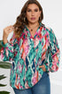 Plus Size Printed Johnny Collar Long Sleeve Blouse