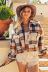 BiBi Brushed Plaid Crop Jacket with Pockets