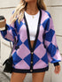 Checkered Dropped Shoulder Long Sleeve Cardigan