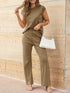 Round Neck Cap Sleeve Top and Pants Knit Set